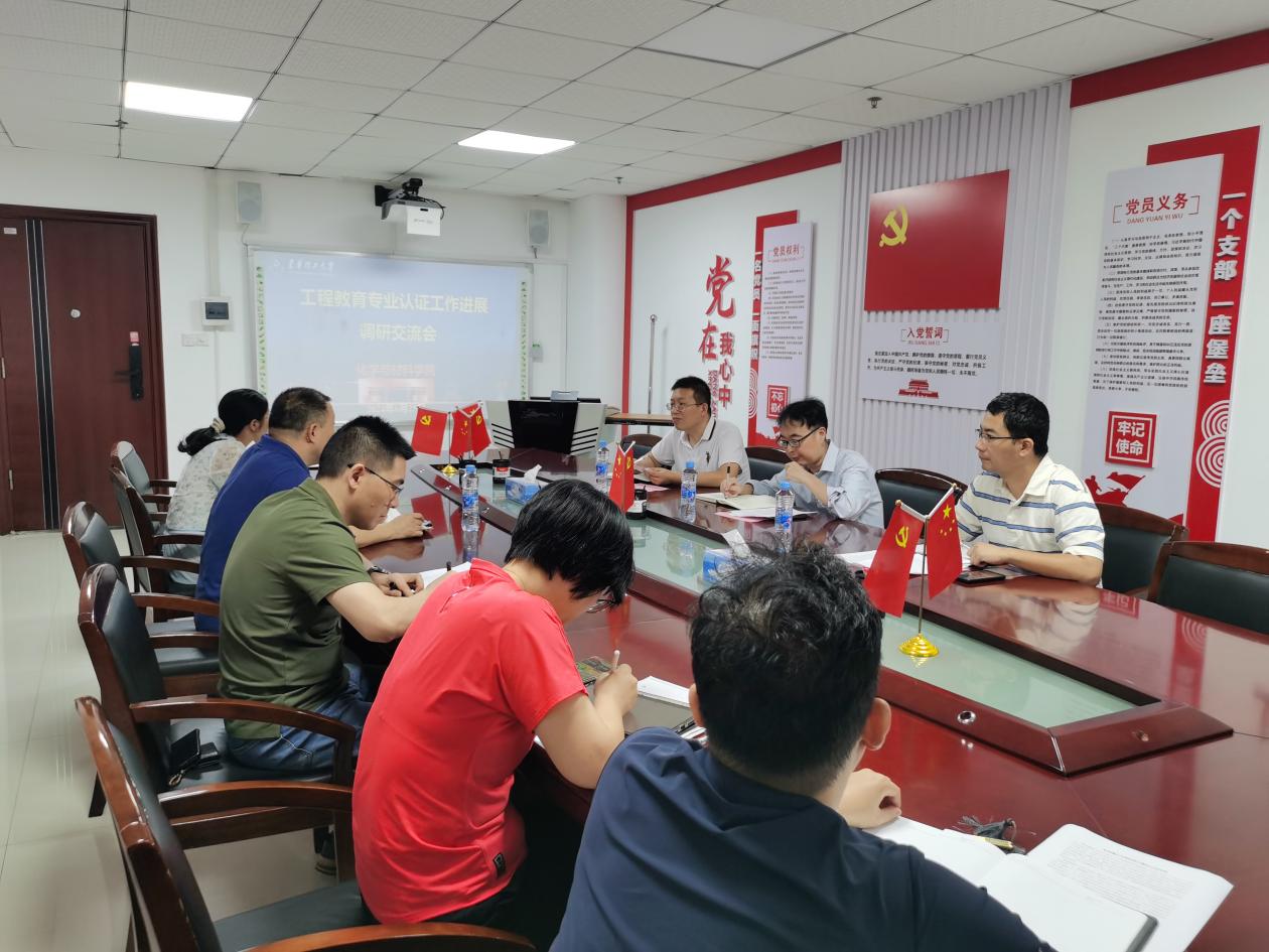近日,东华理工大学高等教育研究与评估中心主任叶长盛一行莅临化学与材料学院,参加学院工程教育专业认证工作进展交流会,并调研指导工程教育专业认证工作。院长马建国,化学工程与工艺系、材料科学与工程系、实验中心和学团办相关人员出席,交流会由副院长张志宾主持。