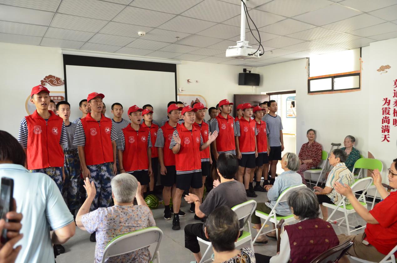 最后,所有志愿者一起合唱《强军战歌》。这首歌曲的激昂旋律和振奋人心的歌词,仿佛让老人们回忆起了年轻时的峥嵘岁月。