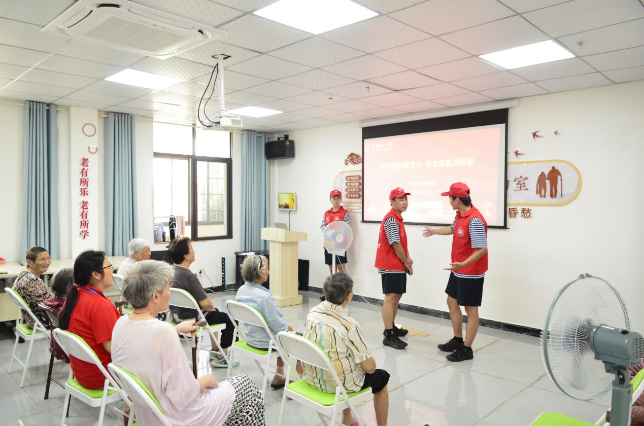 6月21日上午,国防教育学院组织师生前往若士路综合养老服务中心开展主题为“海军情怀献爱心,敬老志愿共温馨”的志愿服务活动,展现新时代定向培养军士的社会责任感和爱心。