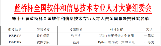 蓝桥杯大赛列入《2023全国普通高校大学生竞赛分析报告》竞赛目录,是高校教育教学改革和创新人才培养的重要竞赛项目。此次在第十五届“蓝桥杯”全国软件和信息技术专业人才大赛个人赛(软件类)国赛获奖,展示了软件学院学子的风采,软件学院将以此为契机,为学生提供更多更好的实践和竞赛平台,不断提升学生综合实践应用能力、创新能力,全面提升专业建设水平和人才培养质量。