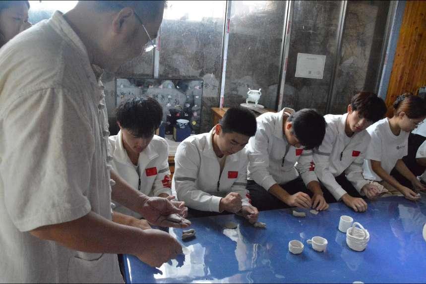 活动期间,张志刚深情讲解了白浒瓷的历史渊源、制作工艺和独特魅力。传习所内陈列着上百件精美的白浒瓷作品,从茶具到瓷板画,无不展现出上千年古法技艺的精妙之处。除了聆听讲解,队员们还亲手参与了白浒瓷的制作过程。在大师的悉心指导下,大家从选料、制坯、上釉到烧制等各个环节一一体验,感受到了传统技艺的魅力和挑战。