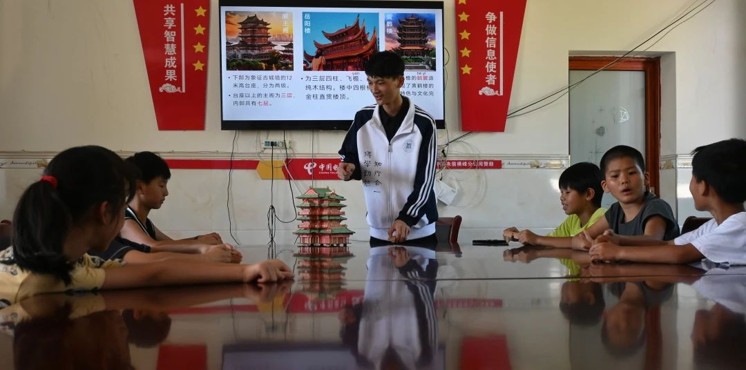 下午,实践团队针对当地留守儿童开展了一场“探寻古建筑之美”的“建筑科普”宣讲。团队成员从横峰当地的赣派建筑引入,结合上午调研时的见闻,向小朋友们中国传统建筑的巧妙绝伦与劳动人民的匠心智慧。