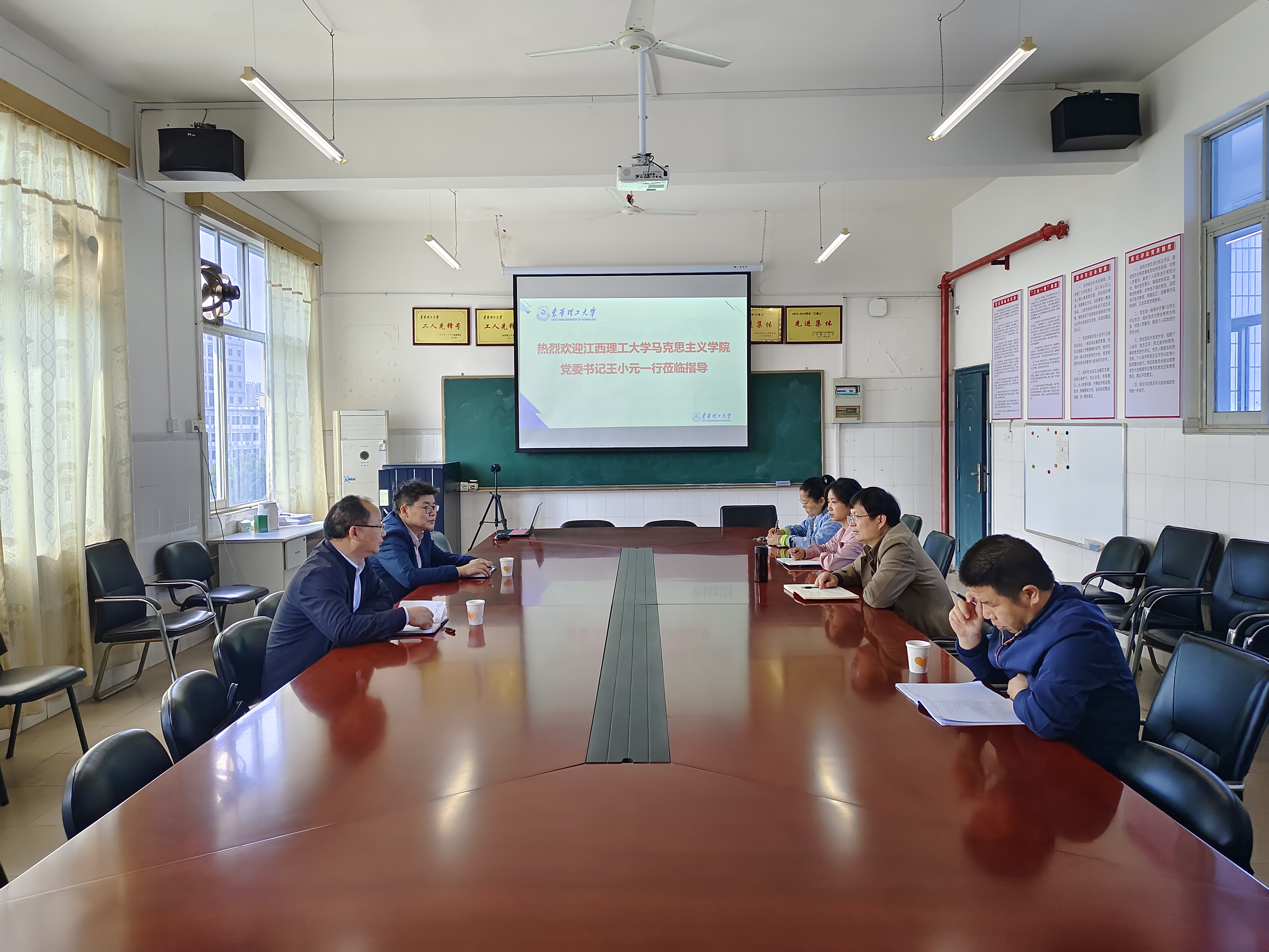 王小元书记详细介绍了江西理工大学马克思主义学院建设全国标杆院系的做法,并对党建特色做了具体的说明。