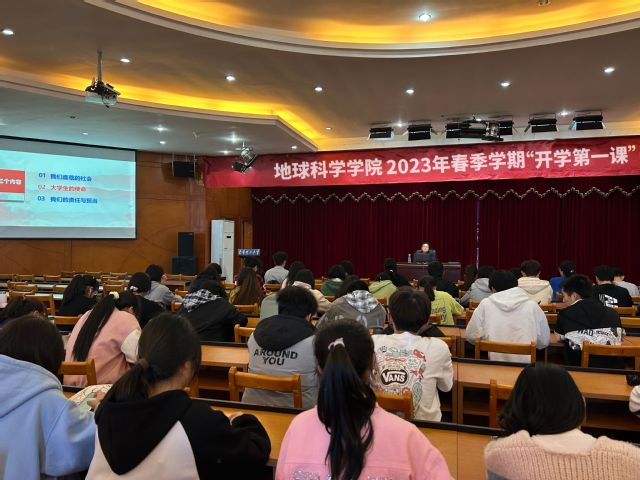 春回大地和风暖,踔厉奋发正当时。3月14日下午,地球科学学院在软件楼四楼报告厅组织开展“开学第一课”讲座。学院党委书记周林图、院长许德如分别授课,各年级本科生代表、研究生代表和全体辅导员等共计200余名师生参加。