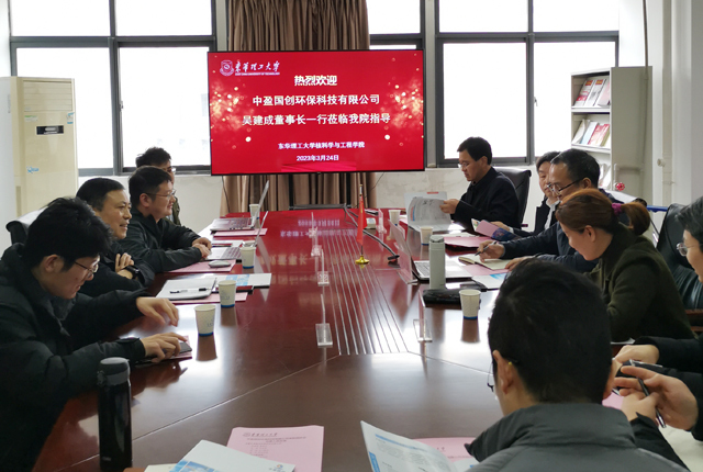 为深入推进产教研融合,切实落实访企拓岗促就业专项行动,3月24日下午,应核科学与工程学院邀请,中盈国创环保科技有限公司(以下简称中盈国创)董事长吴建成、总经理夏渝一行4人来校开展交流合作。院长刘义保在核工楼1213会议室亲切会见了吴建成一行,院党委书记余斌、副书记刘顺祥、副院长李小燕,各系主任、学团、科研办负责人和部分师生代表参加了会谈。双方就校企产学研平台合作、人才联合培养、实训基地建设、学生实习与就业等方面进行了深入交流,并达成合作共识。会议由李小燕主持。