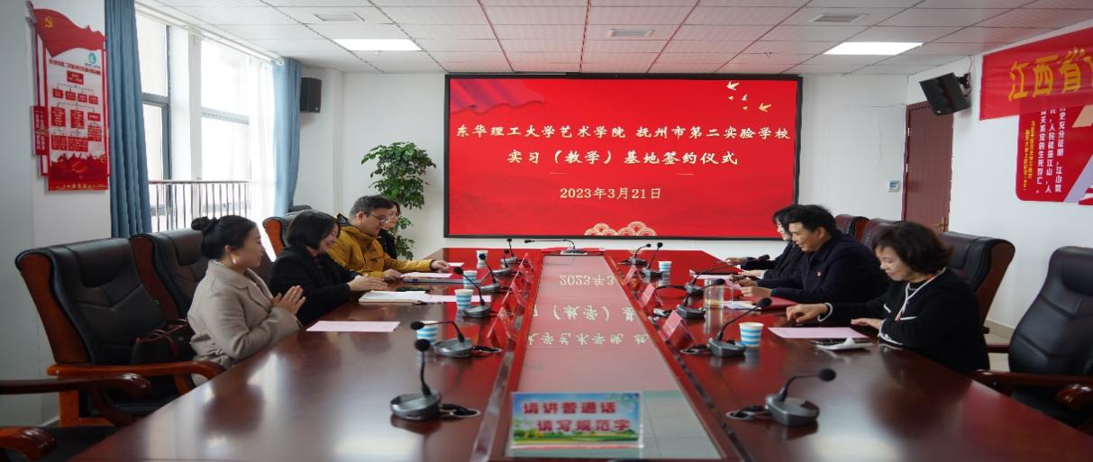 帅国恩介绍了抚州市第二实验学校近年来的发展情况和青年教师的培养计划,并希望以合作共建实习基地为契机,加强与高校之间的合作交流,引进优秀的本科生和研究生到校工作,实现共赢发展。闻慧莲介绍了艺术学院的生源情况和毕业生就业情况,表达了实习基地的重要性和对深度合作的憧憬。