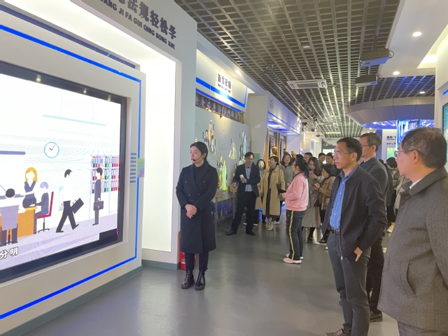 南昌廉文化馆由“一园、一馆、一带”构成,主要涵盖了人文雕塑、历史典故以及南昌本土廉文化人物事迹等各类中华廉文化优秀思想图文展品。在讲解员的带领下,大家围绕“趣识廉事”“百家论廉”“家风伴我行”“莲心廉语”等主题,结合智能语音、人脸捕捉、虚拟现实等科技手段,触屏观看党纪法规教学微视频,积极参与廉洁知识竞答,在寓教于乐中对廉文化历史有了更深一步的认识。