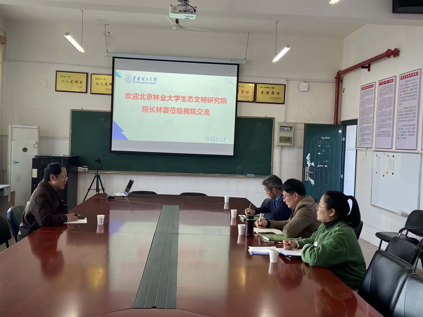 2023年3月31日下午,北京林业大学生态文明研究院院长林震来到我院指导交流,学院在测绘楼505会议室召开座谈会。会议由学院党委书记华启和主持,研究生院副院长张延飞及相关教师参加了座谈会。