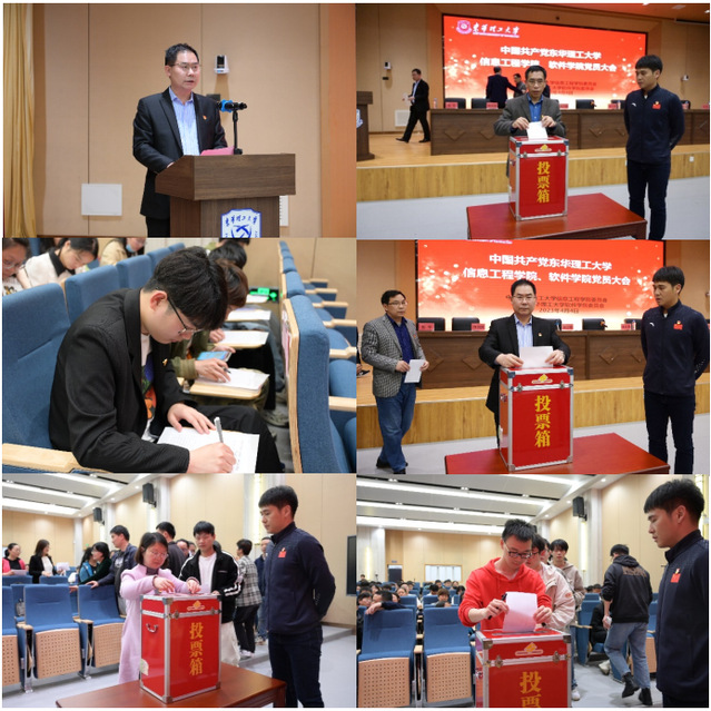 4月4日下午,信息工程学院党委、软件学院党委在新实验大楼一楼报告厅召开党员大会,举行新一届党委换届选举工作。校党委委员、发展规划处处长乐长高,校党委宣传部舆情科科长刘金彪到会指导,215名师生正式党员佩戴党徽庄严参会。会议分两个阶段进行,分别由院长何月顺、院党委书记许志文主持。