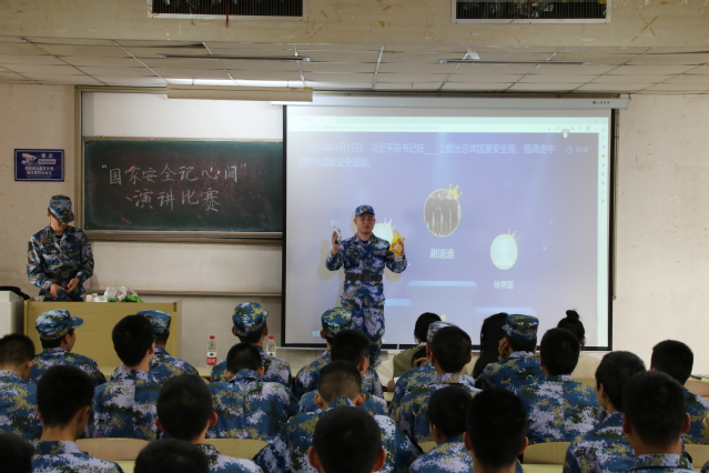 4月9日下午三点半,学院“国家安全记心间”演讲比赛在二教阶十举行。12名选手们从不同角度出发,阐述了国家安全的重要性和个人应该如何参与国家安全建设。最后,马跃和孙智博不负众望,夺得了一等奖。比赛还评出了四名二等奖以及六名三等奖。在演讲比赛过程中,进行了国家安全知识抢答,普及了国家安全知识,调动了全体定向培养军士的积极性。