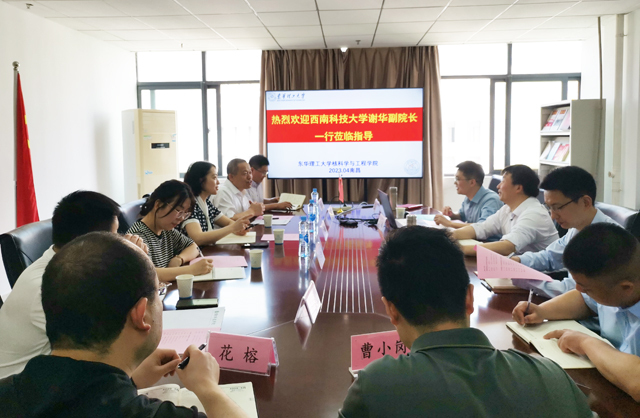 4月20日上午,西南科技大学国防科技学院副院长谢华、核化工与核燃料工程系主任冷阳春、核工程与核技术系主任姬彦玲、辐射防护与核安全系主任吕会议一行4人来院交流调研。学院在核工楼1213会议室召开座谈会,院党委书记余斌出席会议,副院长张怀强主持会议。