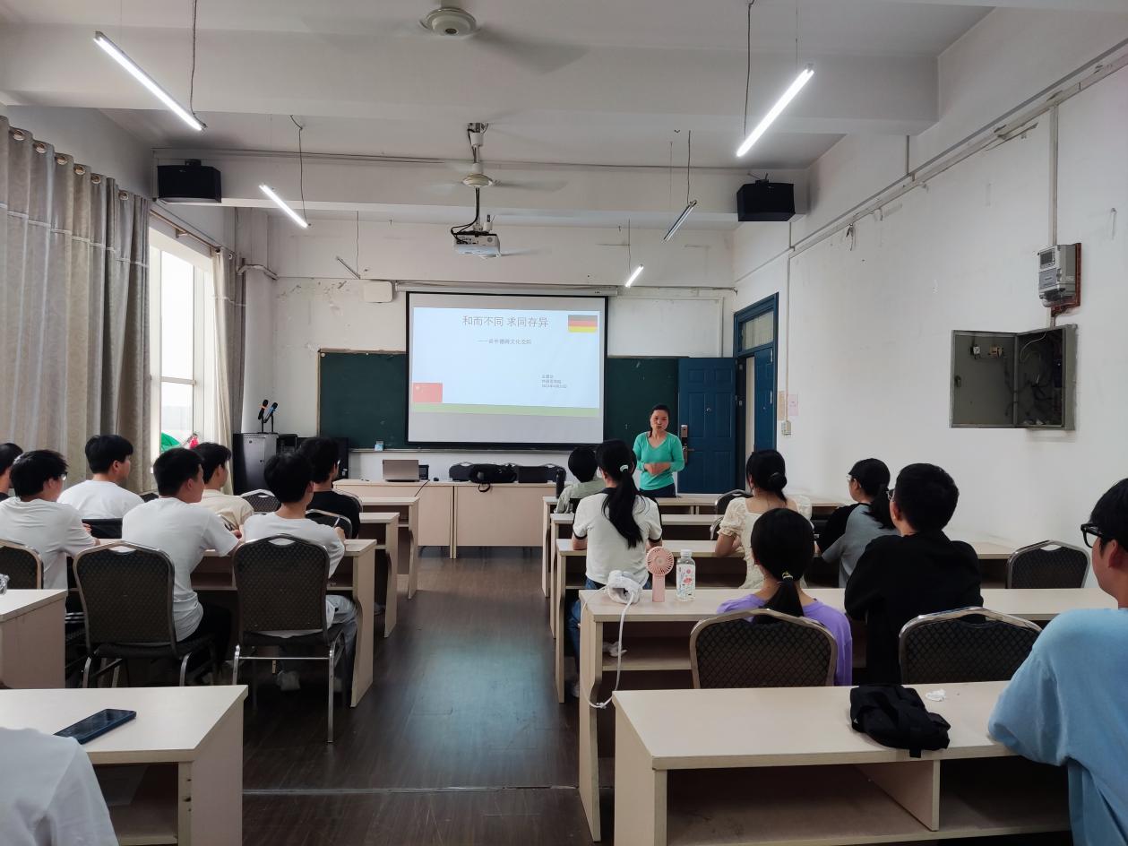 4月20日下午,机电学院联合外国语学院在机电楼409开展《和而不同,求同存异——谈中德跨文化交际》主题讲座,由外国语学院德语翻译教师王翠华主讲,大一学生代表现场聆听。
