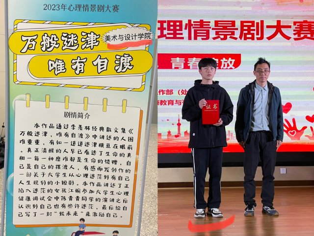 4月25日,我院作品《万般迷津,唯有自渡》在2023年校心理情景剧决赛中获得第二名的好成绩。此次比赛由校心理咨询中心举办。