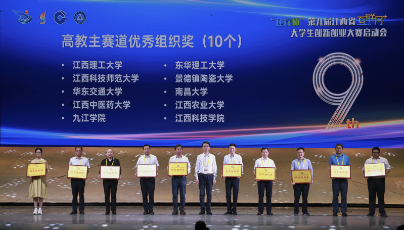 会议表彰了第八届江西省“互联网+”大学生创新创业大赛各赛道优秀组织奖获奖单位,东华理工大学荣获第八届江西省“互联网+”大学生创新创业大赛高教主赛道优秀组织奖、“青年红色筑梦之旅”赛道先进集体奖,刘云海代表学校上台领奖。在本次大赛中,东华理工大学共获国家级银奖1项、铜奖7项,省级金奖2项、银奖9项、铜奖9项,并连续四年获得“互联网+”大学生创新创业大赛优秀组织奖,连续两年获得先进集体奖。