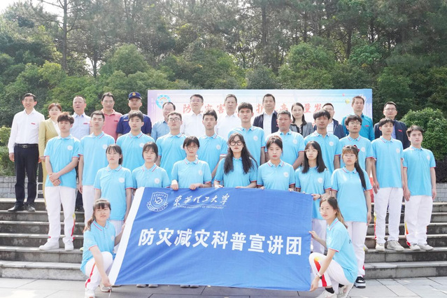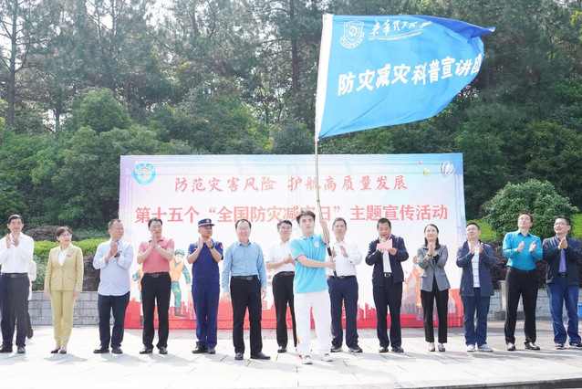 活动中,黄同林为东华理工大学“防灾减灾科普宣讲团”授旗,共同启动本次“全国防灾减灾日”主题宣传活动。