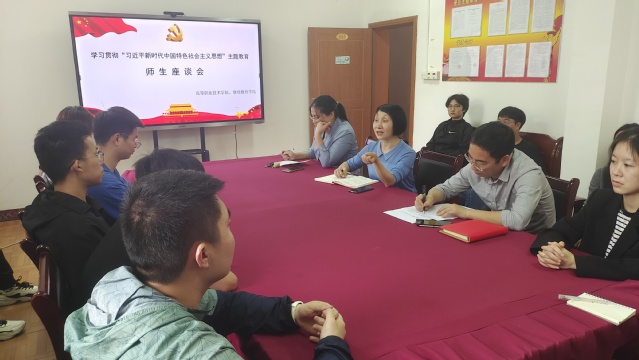 为了学习贯彻习近平新时代中国特色社会主义思想主题教育,扎实开展调查研究,切实推动学院高质量发展,高职学院于5月12日下午16:00在学工楼二楼会议室召开专题座谈会。学院党委书记杨艳萍出席,学院相关老师、20级学生党员、21级入党积极分子、普通学生代表参加了本次座谈会。