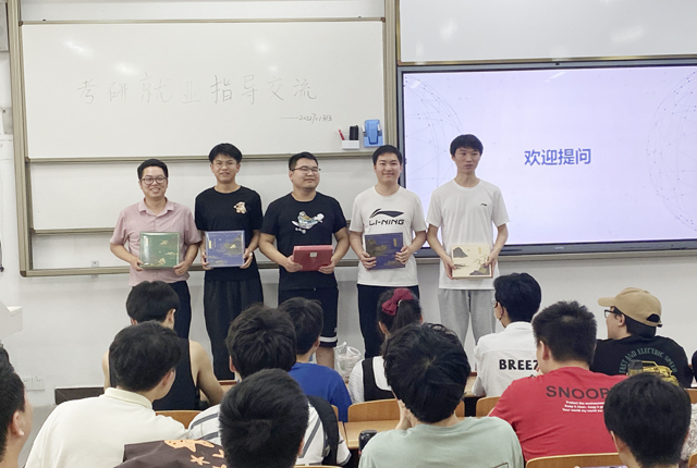 2019级刘佐聪、吴勇进、彭煜恺和邹子浩四位同学分别就考研和就业两方面,结合自身的成功经历讲解了求职就业的的经验和注意事项、考研复习计划安排以及考研经验体会。