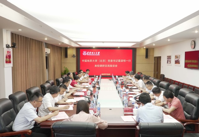 7月23日下午,中国地质大学(北京)党委书记雷涯邻,中国科学院院士、中国地质大学(北京)原校长邓军一行来校调研交流,并送中国地质大学(北京)“杰青”王庆飞教授到任东华理工大学学术副校长,学校在行政楼401会议室召开座谈会。东华理工大学党委书记张福庆致辞,校长徐景坤主持。